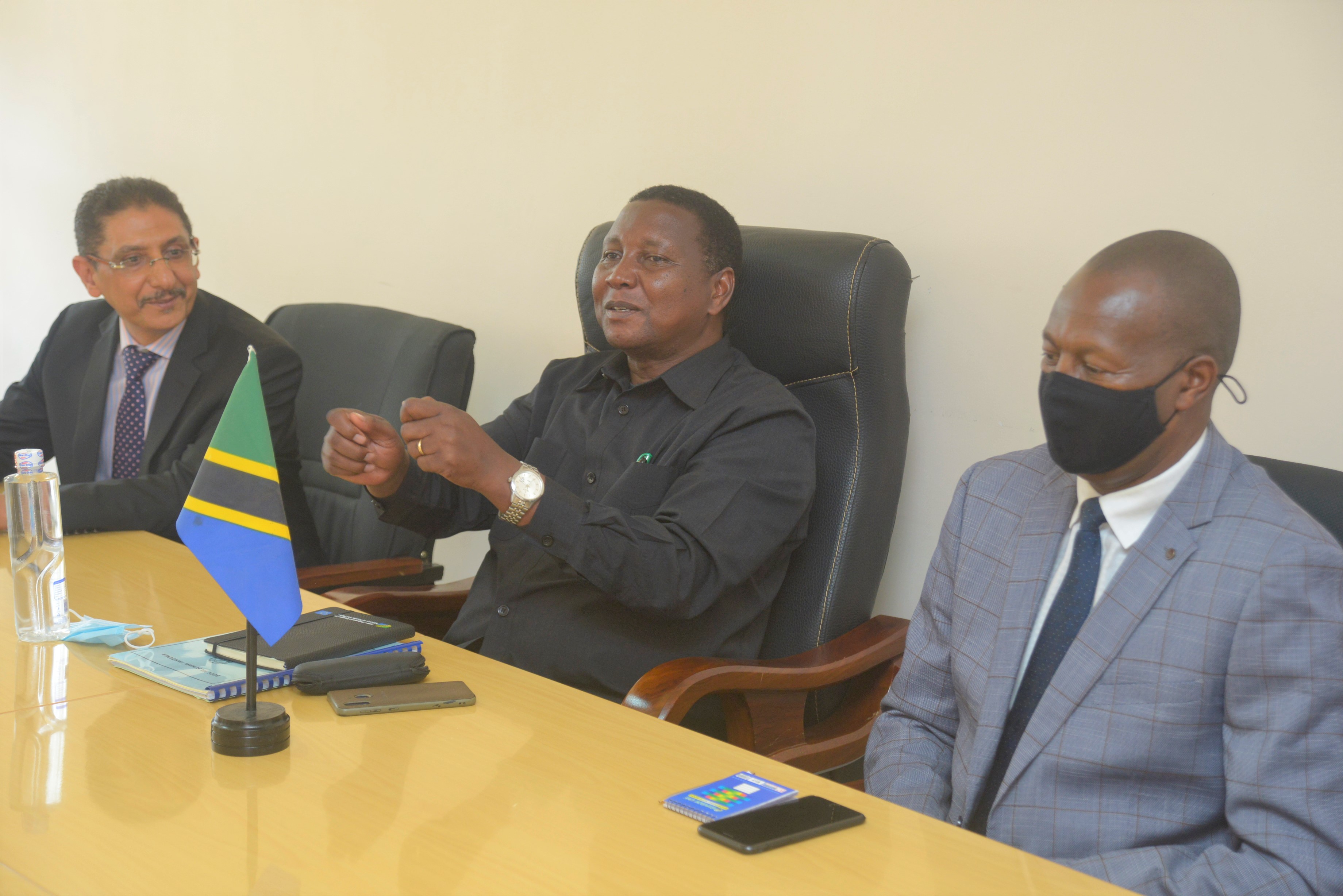 Waziri wa Kilimo, Prof. Adolf Mkenda (Katikati) akisisitiza jambo wakati wa mkutano na wazalishaji wakubwa wa sukari nchini uliofanyika katika ukumbi wa Wizara ya Kilimo Maarufu “Kilimo IV” Jijini Dodoma, leo tarehe 16 Agosti 2021. Wengine pichani ni Katibu Mkuu wa Wizara ya Kilimo Ndg Andrew Massawe (Kulia) na Mwenyekiti wa Wazalishaji wakubwa wa sukari Tanzania Ndg Seif Ally Seif (Kushoto).