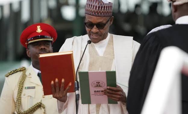 Rais Buhari ameapishwa baada ya kupata ushindi wa kiti cha Urais,  kufuatia uchaguzi uliofanyika mwezi Februari mwaka huu  ambapo alipata asilimia 56 ya kura zote zilizopigwa dhidi ya asilimia 41 ya kura alizopata mpinzani wake wa karibu Atiku Abubakar.
