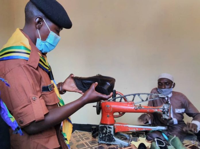 Khatibu ambaye ni mmoja wa Wanachama wa kikundi cha watu wenye ulemavu cha Muongozo kilichopo wilayani Tandahimba, alipata mkopo kutoka halmashauri ya wilaya hiyo na hivyo kuendeleza kazi yake ya kutengeneza viatu.