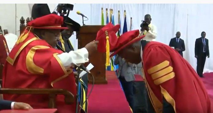 Hafla ya kumtunuku Rais Magufuli Shahada hiyo imefanyika jijini Dodoma wakati wa Mahafali ya Kumi ya Chuo Kikuu cha Dodoma (UDOM).