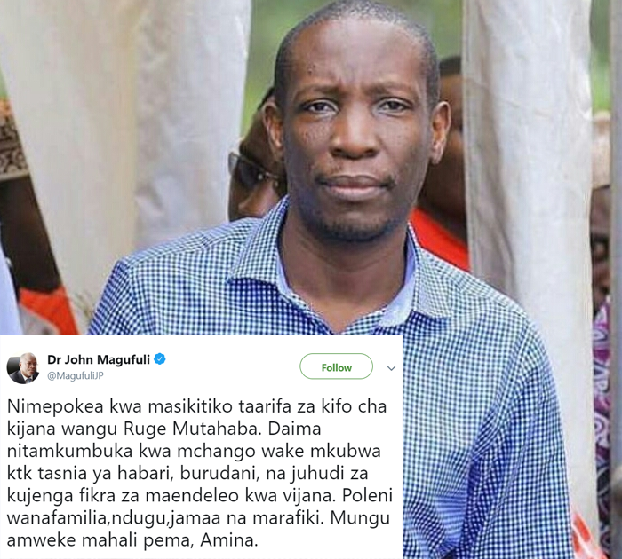 Mkurugenzi wa Vipindi na Uzalishaji wa Clouds Media Group Ltd. Ruge Mutahaba amefariki Dunia jioni ya leo nchini Afrika Kusini alipokuwa anapatiwa matibabu, kufuatia msiba huo Rais Magufuli ametoa salamu za pole kwa ndugu jamaa na marafiki na kueleza kusikitishwa na msiba huo
