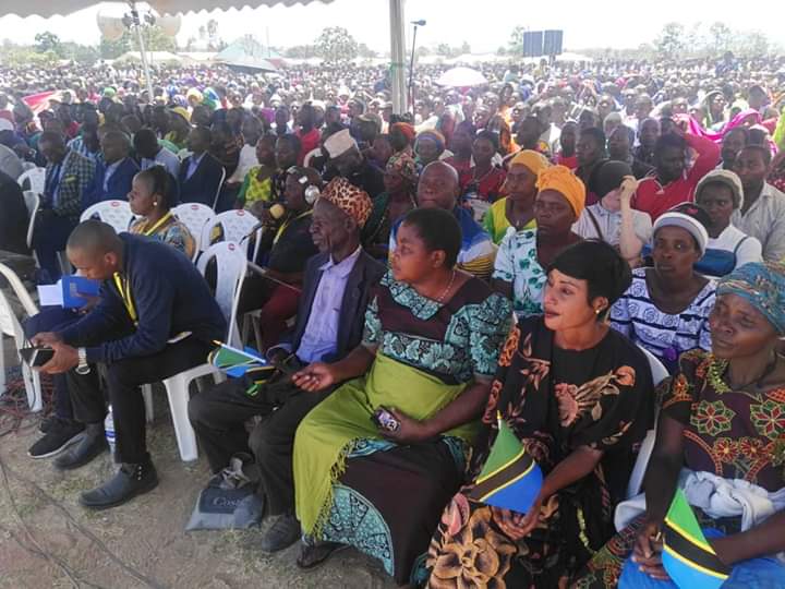 Wakazi wa mji wa Namanyere wilayani Nkasi mkoani Rukwa wakiwa kwenye uwanja wa Sabasaba, wakimsubiri Rais John Magufuli ambaye anatarajiwa kufanya mkutano wa hadhara hii leo.