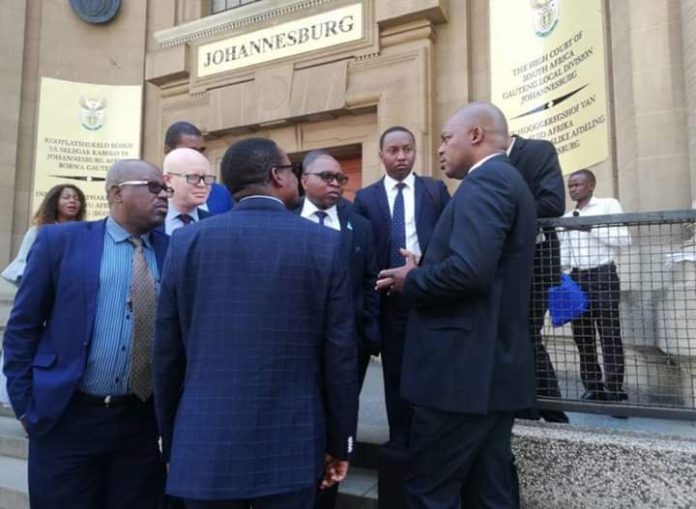 Jopo la Wanasheria na viongozi wa serikali ya Tanzania, wakiwa nje ya mahakama ya Gauteng ya nchini Afrika Kusini, kufuatilia hatma ya kushikiliwa kwa ndege aina ya Airbus 220 – 300, mali ya Shirika la Ndege Tanzania (ATCL) inayoshikiliwa kwa amri ya Mahakama.