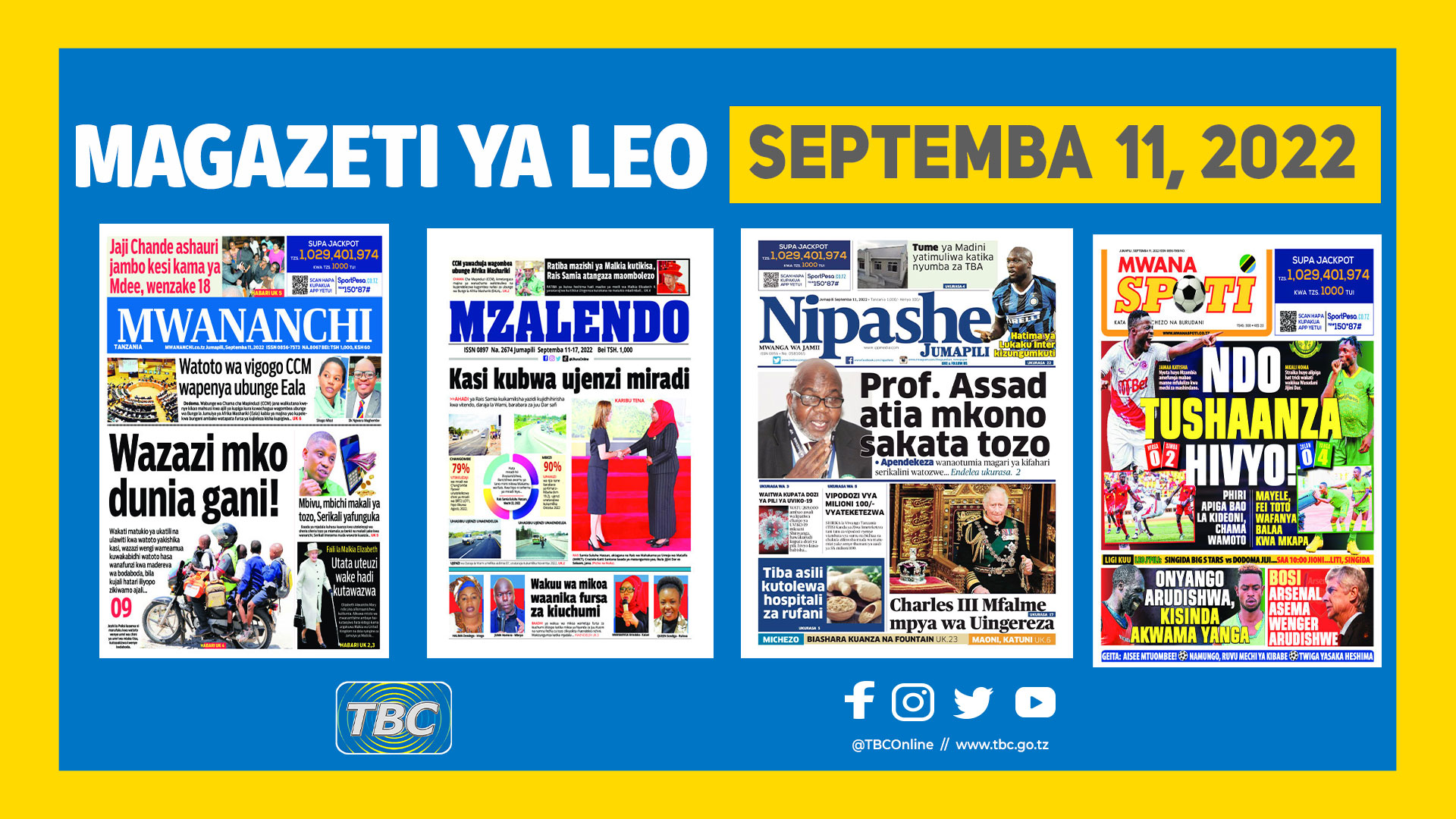 KURASA ZA MAGAZETI Yaliyomo katika kurasa za magazeti leo September 11, 2022 By James Range - September 11, 2022 0 1191 Share FacebookTwitterWhatsAppLinkedin