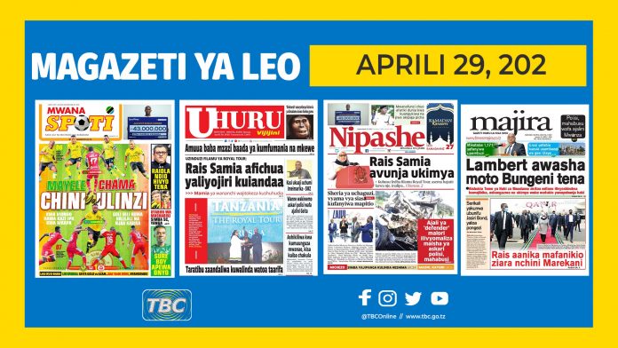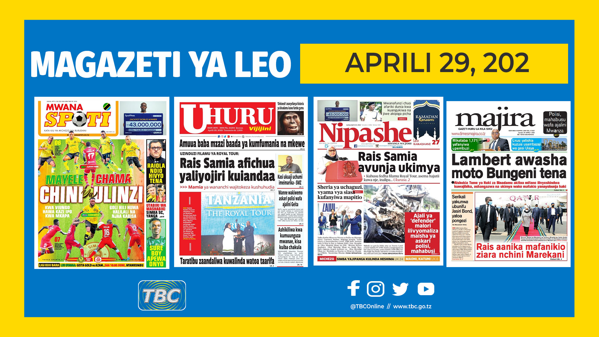 KURASA ZA MAGAZETI Yaliyomo katika kurasa za magazeti ya leo Aprili 29, 2022 By James Range - April 29, 2022 0 957 Share FacebookTwitterWhatsAppLinkedin