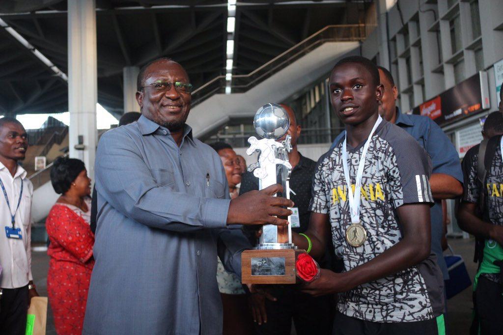 Serengeti Boys wamelakiwa na Waziri wa Habari, Utamaduni, Sanaa na Michezo Dkt Harrison Mwakyembe ambaye amewapongeza wachezaji hao kwa ushindi walioupata.